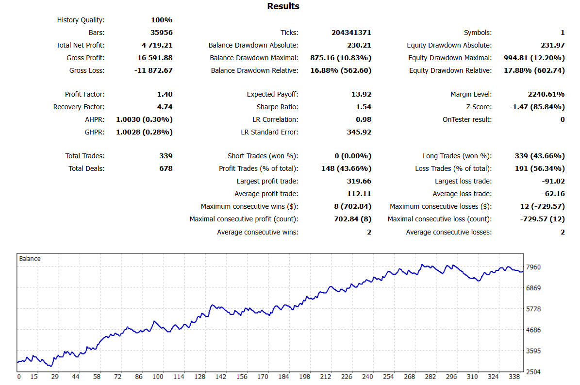 This Expert Advisor is designed to trade major Forex pairs on the H1 timeframe, leveraging a refined blend of trend, momentum, and volatility filters to identify high-probability setups in the currency market.